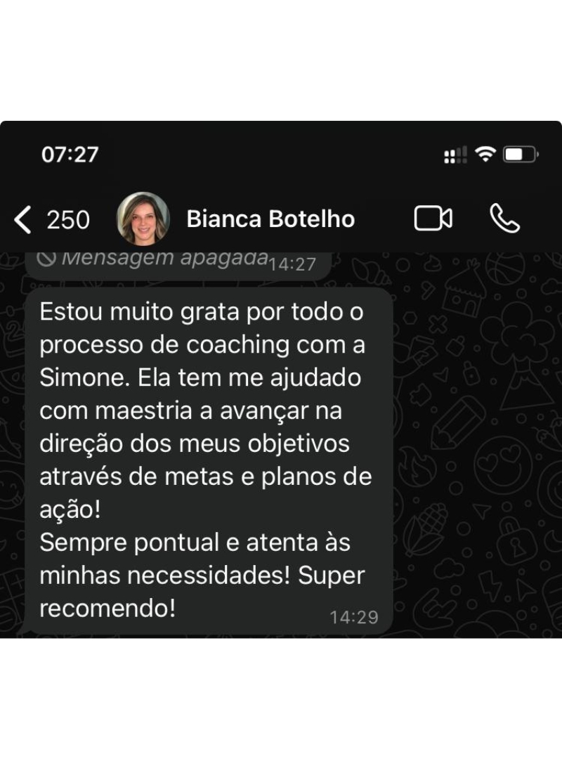 Sou também formada em Coach Integral Sistêmico, uma abordagem holística e personalizada que ajuda meus clientes a desbloquearem padrões limitantes e alcançarem seus objetivos de forma equilibrada.